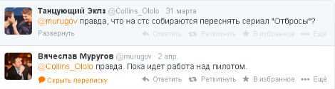 Удивительная новость... Мы вот тут недавно зашли в страничку твиттера Вячеслава Муругова, надеясь, что он там хотя бы пару строк черкнул про новые сезоны «Молодежки» и «Выжить После», но вместо этого обнаружили там достаточно неожиданную переписку.