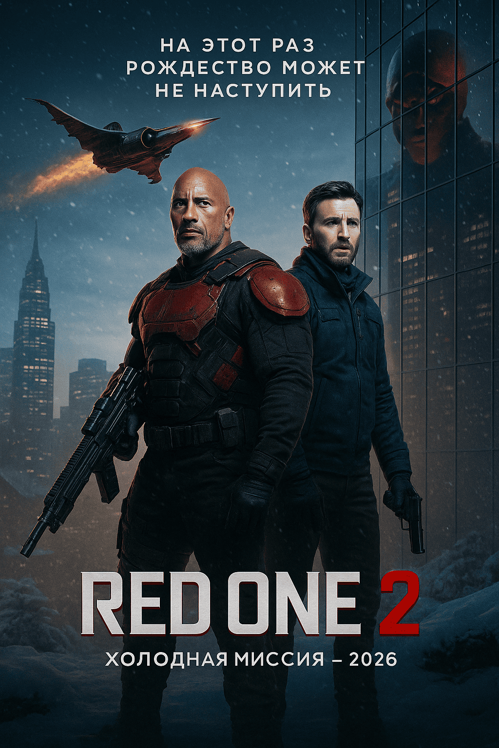 В первой части зрители увидели уникальный жанровый микс — Рождество, шпионские миссии и мифологию Санты. Дуэйн Джонсон в роли специального агента Колла Паркса и Крис Эванс как эксперт по безопасности Джек О’Мэлли отправились на спасение Санта-Клауса — и подарили миру один из самых неожиданных праздничных блокбастеров года.