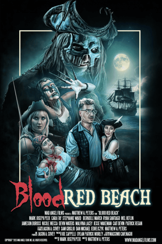 Семь друзей летят на частный остров за лайками: шоу-охота за «зарытым кладом», стримы, селфи, лёгкие загадки. Вместо трофея они будят капитана Родерика Кросса — пирата, проклятого бродить по Кровавому пляжу, пока не вернут каждую монету. Ночь с кровавой луной превращает игру в гонку: шифры на старых картах, ловушки в приливе, ссоры в команде, где каждый уже считает золото своим. Чтобы дожить до рассвета, им придётся решить, кого спасать, а кого отпустить. Но что сильнее — дружба или жадность, когда море краснеет по-настоящему?